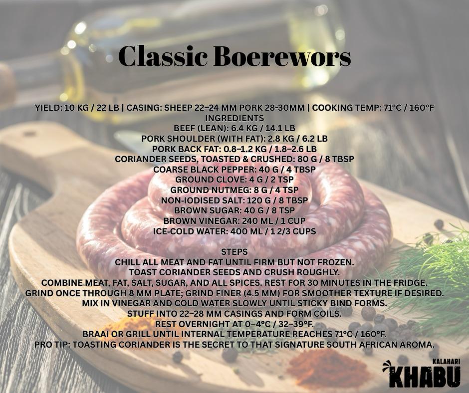 Casing: Sheep 22-24 mm, Pork 28-30 mm