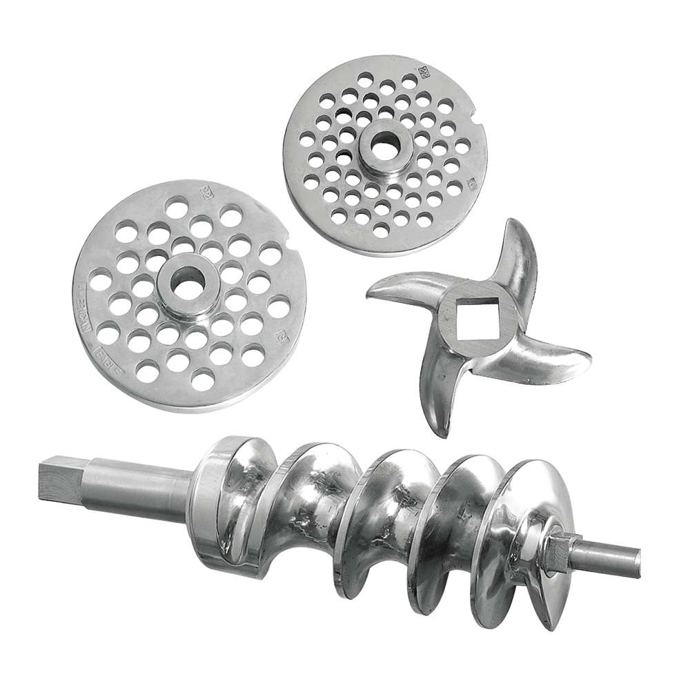 After each use, unplug the machine, remove all removable parts, wash and dry them thoroughly, occasionally lubricate the feed screw and gears with food-safe lubricant, and check the knife and plate for wear. Doing this keeps performance consistent.