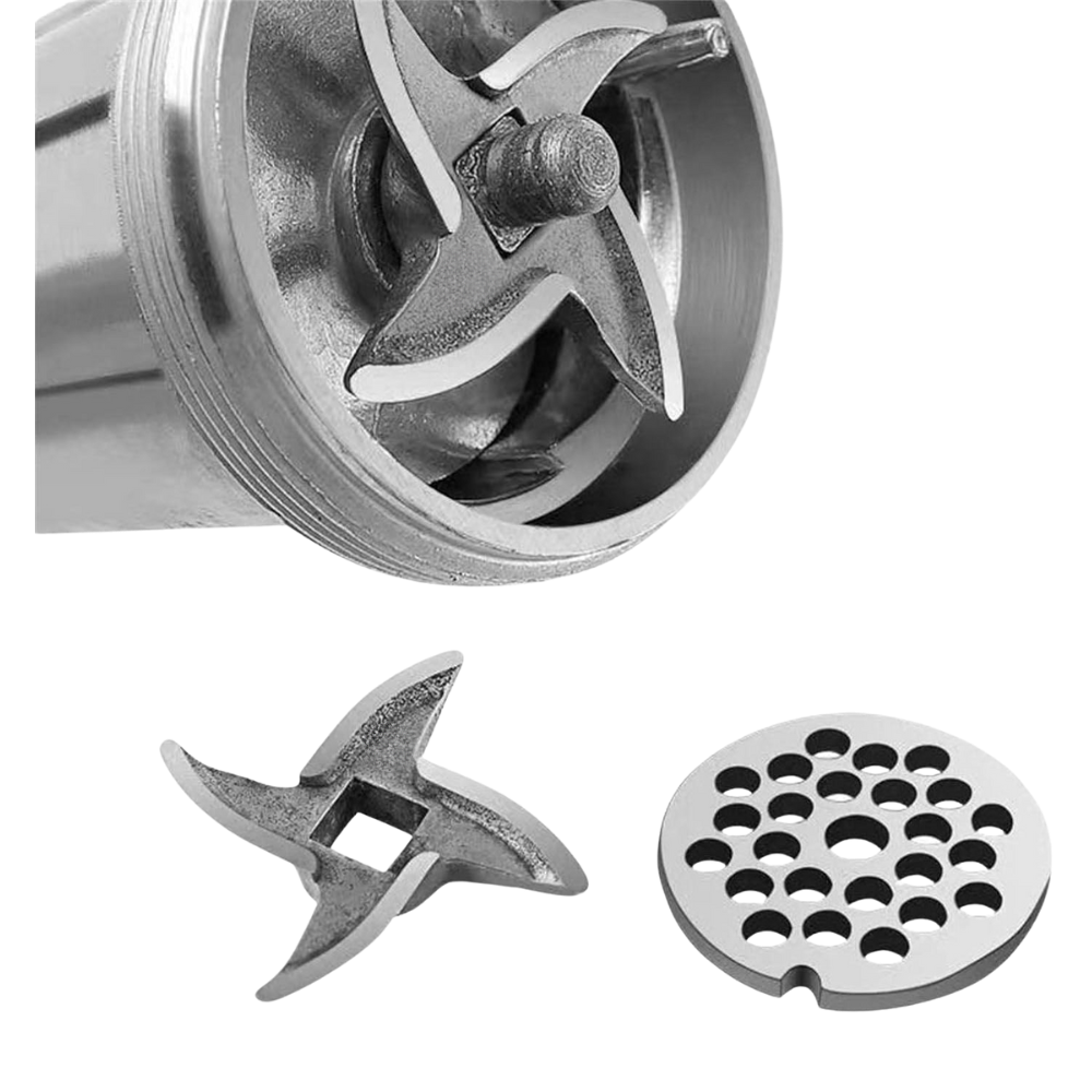 Multiple grinder plates and powerful blade handles a wide variety of foods