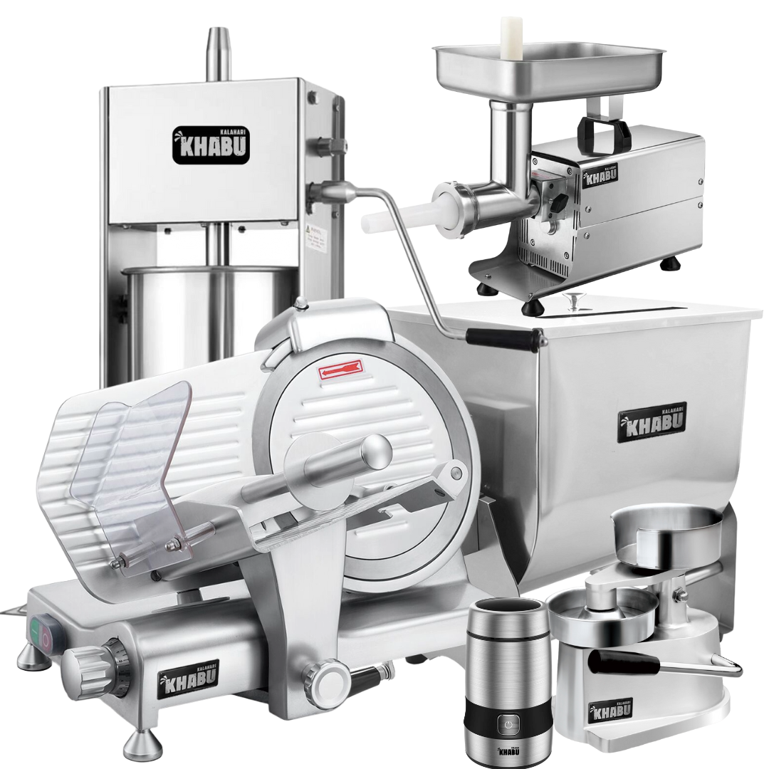 Kalahari Khabu brings together a full range of grinders, mixers, presses, slicers, and accessories designed to work seamlessly as one unified sausage-making system.